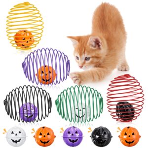 Jecery 5 Pcs Cat Spring Balls Toys Stretchable Rolling Balls Colorful Playful Coils Interactive Action Toy Caged Rats for Kitten Pet Supplies