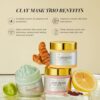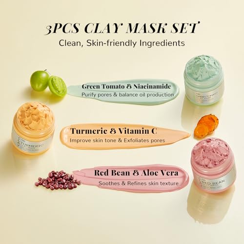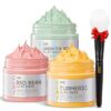 ANAI RUI 3 Pcs Face Mask Set – Turmeric Clay Mask – Green Tea Face Mask – Dead Sea Mud Mask for Oily Skin