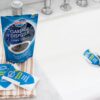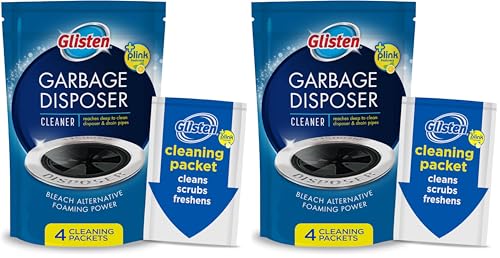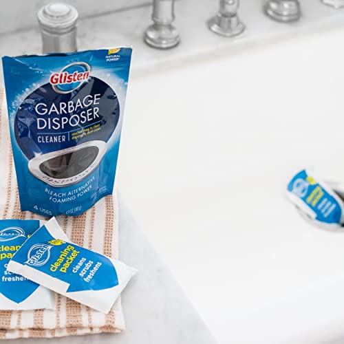 Fight back against sink build-up and odors with Glisten Garbage Disposer Cleaner, a bleach alternative with Plink freshening power. The lemon-scented disposer cleaner and deodorizer is a convenient and easy way to deep clean and freshen the disposal in just a few minutes. With no harsh chemicals, the fast-acting foaming packet scrubs away tough grunge, build-up, and garbage disposal smells, leaving the sink and the whole kitchen smelling fresh. The formula works in all disposals and is plumbing, pipe, sink, drain, and septic-friendly. Use the disposer and drain cleanser to help clean, freshen, and maintain disposal systems. While baking soda and vinegar home remedies, air fresheners, and regular cleaning sprays or gels cover the surface, this drain disposal solution gets down deep to deliver superior cleaning and freshening power. The foam quickly breaks down stubborn food particles, grease, and oil lurking in the disposer for a smoother running machine and a fresh scent. Use one packet weekly to help keep your drains odor-free and help optimize your garbage disposal’s performance. This product is designed for properly working disposals and will not clear a clogged drain. Glisten is proudly made in the USA.