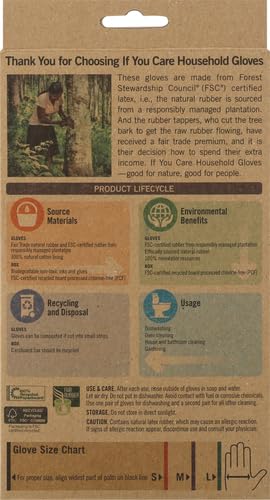 IF YOU CARE Household Gloves are made from Forest Stewardship Council (FSC) Certified latex, which assures that the natural rubber used has been sourced from a responsibly managed plantation. The 100% latex content creates a stronger, longer lasting glove. Furthermore, the rubber tappers who cut the bark to get the raw material flowing, have received a fair trade premium, and it is their decision how to spend their extra income. IF YOU CARE Household Gloves are good for nature, good for people. Available in three sizes – small, medium, and large – and come as a pack of one vibrant green pair that are lined with comfortable, 100% natural cotton. Gloves naturally biodegradable and perfect for dishwashing, oven cleaning, washing kitchen and bathroom surfaces, and gardening. IF YOU CARE is a brand that cares about our health and environment as much as you do. That’s why our kitchen and household items are all carefully crafted to have the least environmental impact and leave the least carbon footprint possible, while at the same time, delivering the highest quality products.