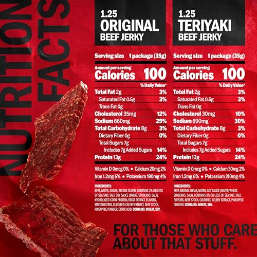 Start your “New Year, New You” journey with Jack Link’s Beef Jerky, the ultimate protein snack for active lifestyles. Whether you’re embracing Dry January, hitting the gym with a fitness tracker, or focusing on gut health, our jerky delivers bold flavor and protein. Support your goals without sacrificing taste. Jack Link’s Beef Jerky Variety Pack brings together two classic flavors in tender, flavorful snacks that fit your busiest days. Made from lean cuts of 100 percent premium beef, both Original and Teriyaki are seasoned with simple ingredients like salt, water, and spices, then slow cooked over hardwood smoke for a signature taste. With a good source of protein in every bag and 94 percent fat free jerky, this variety pack offers delicious fuel you can count on. This pack includes nine 1.25-ounce single serving bags that are perfect for packing in lunches, bringing to work, tossing in backpacks, or keeping in the pantry for after school or on the go snacking. Ready to eat and easy to take anywhere, these portioned jerky bags help power you through busy days with convenient protein. When you open a Jack Link’s meat snack, you get a taste of the American tradition that has made this family business a favorite for generations through hard work, fun, and quality you can trust.