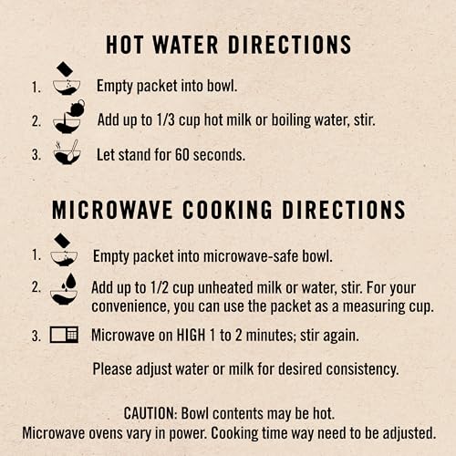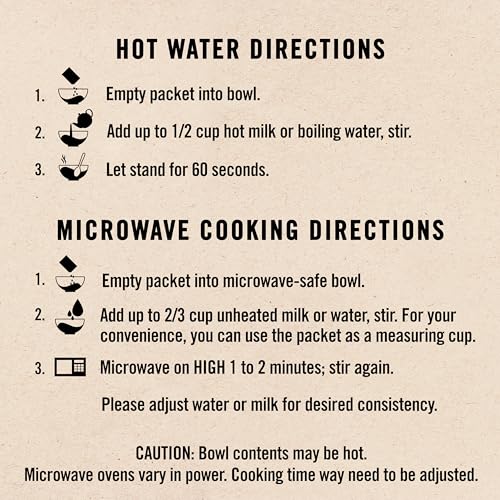 | Flavor Name | 4 Flavor Variety Pack – 35% Less Sugar, Apples and Cinnamon, Fruit & Cream 4 Flavor Variety, Fruit Fusion 3 Flavor Variety Pack, Maple & Brown Sugar, Maple & Brown Sugar – 50% Less Sugar, Original, Peaches & Cream, Raisin, Date & Walnut, Strawberries & Cream, Variety Pack – Classic 4 Flavor |